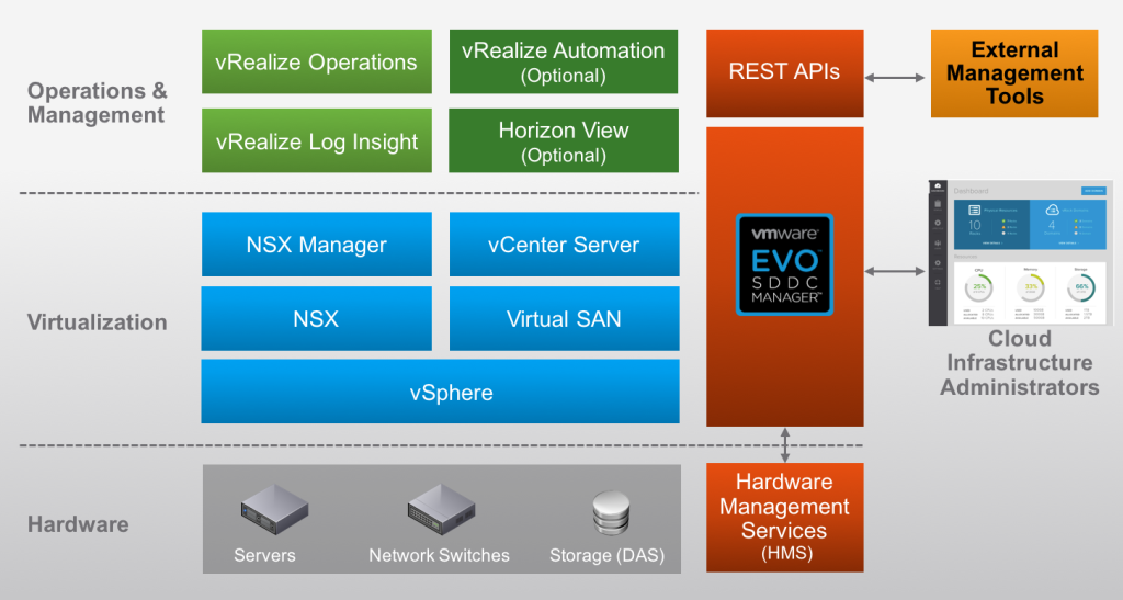 - VMware EVO SDDC: precedentemente noto come EVO: RACK questa è la modalità più semplice per creare un Software Defined DataCenter (SDDC appunto ;) ) con tutte le componenti e i software VMware